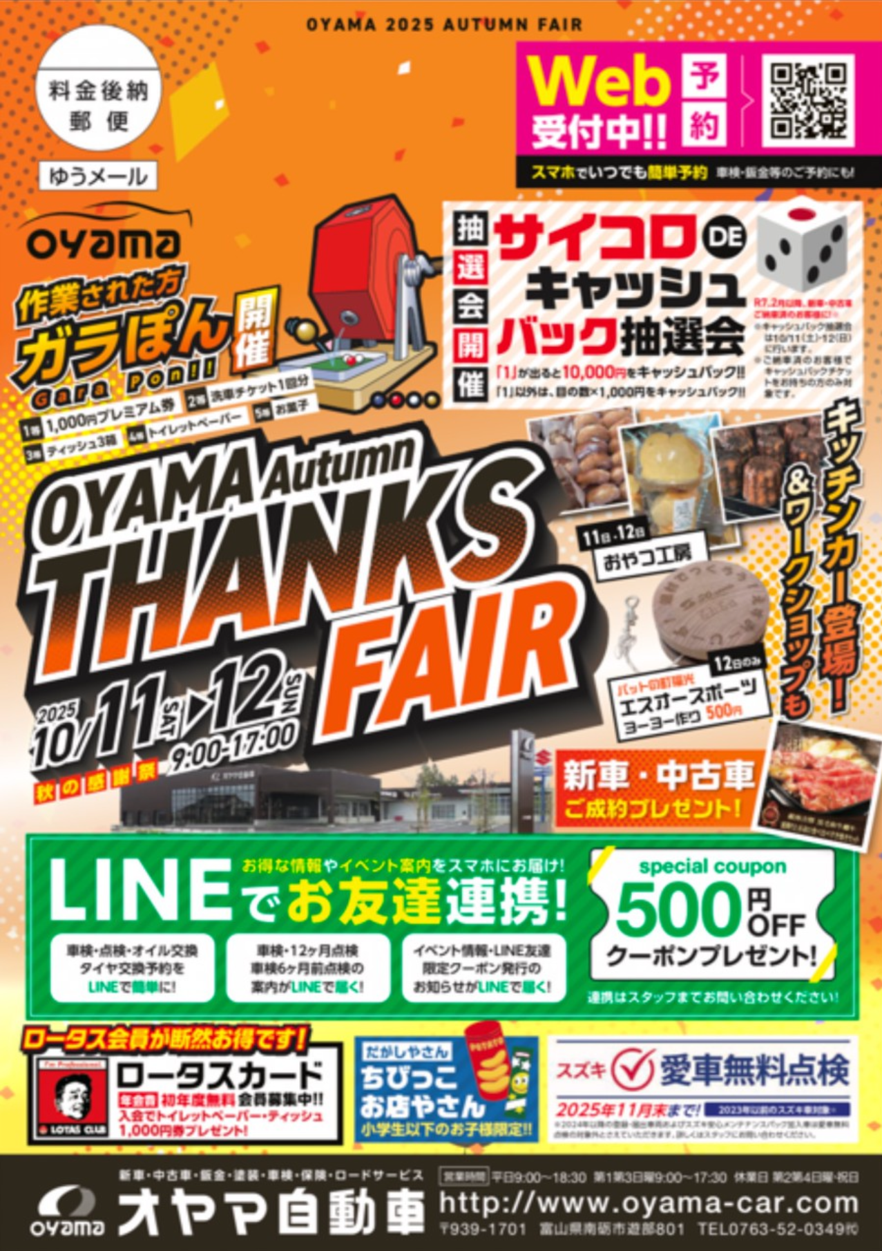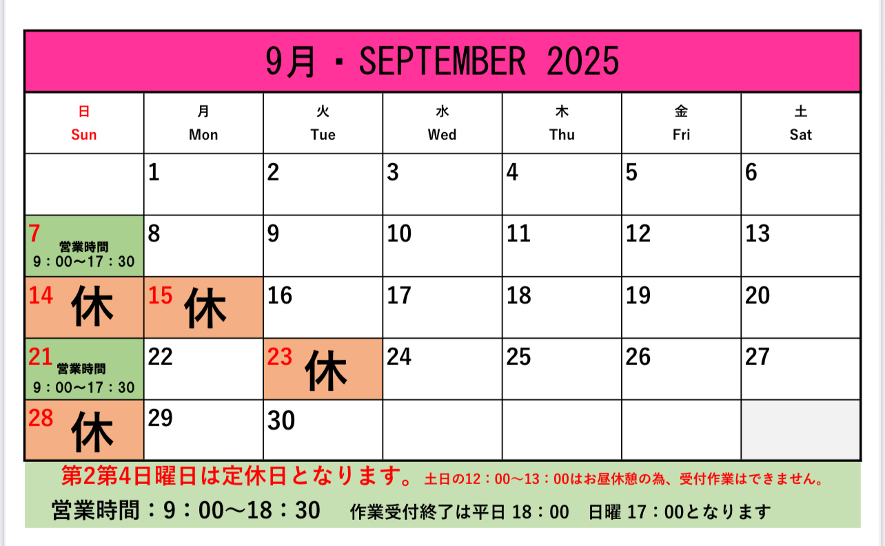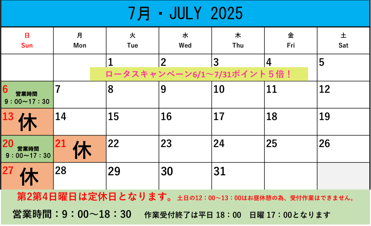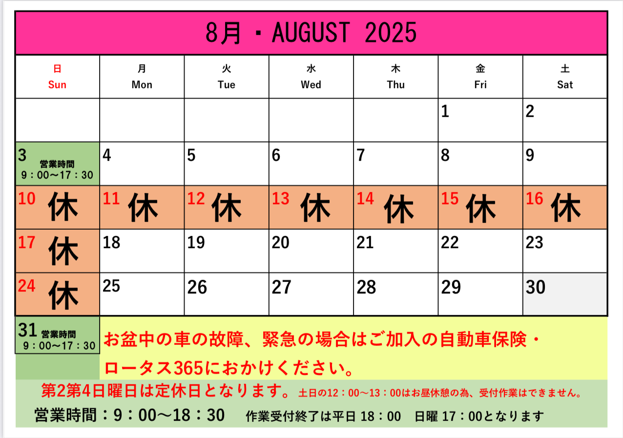おすすめイベント情報の一覧です。クリックすると、詳細がご覧になれます。 11月営業のご案内 ★OYAMA Autumn THANKS FAIR★10/11・12 10月営業のご案内 9月営業のご案内 8月営業のご案内 7月営業のご案内 メンテナンスコーティング料金改定のご案内 6月営業のご案内 !!緊急告知!!6月1日よりタイヤの価格が値上がりします!!!!緊急告知!!6月1日よりタイヤの価格が値上がりします!! 5月営業のご案内 4月営業のご案内 3月営業のご案内 Page 1 of 512›»